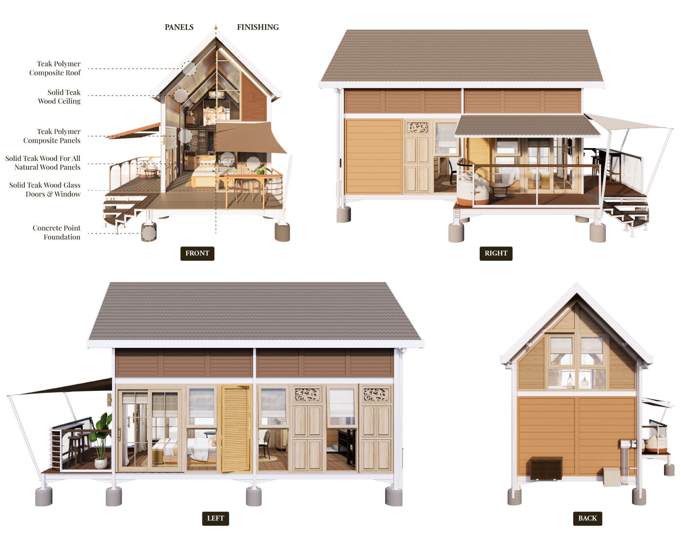 All Teak Wood Walls- sourced from trusted suppliers, giving a true natural living ambiance.
